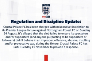 體育資訊11月5日訊 英足總發布官方公告,確認水晶宮俱樂部因球迷行為不當遭到指控,需要在11月11日之前做出回應。