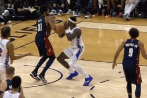 GIF-博納面對阿倫連續虛晃,最終失誤