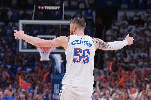 GIF-哈滕血帽威少,然后背筐出手砸籃板上方了