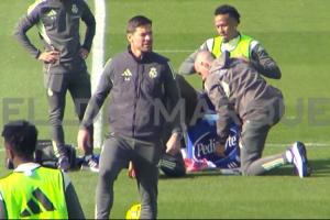 體育資訊11月08日訊 西媒ElDesmarque放出了皇馬訓練的視頻,米利唐受傷坐在水箱上,隊醫為他纏上繃帶。阿隆索代替他上場完成了團隊訓練。